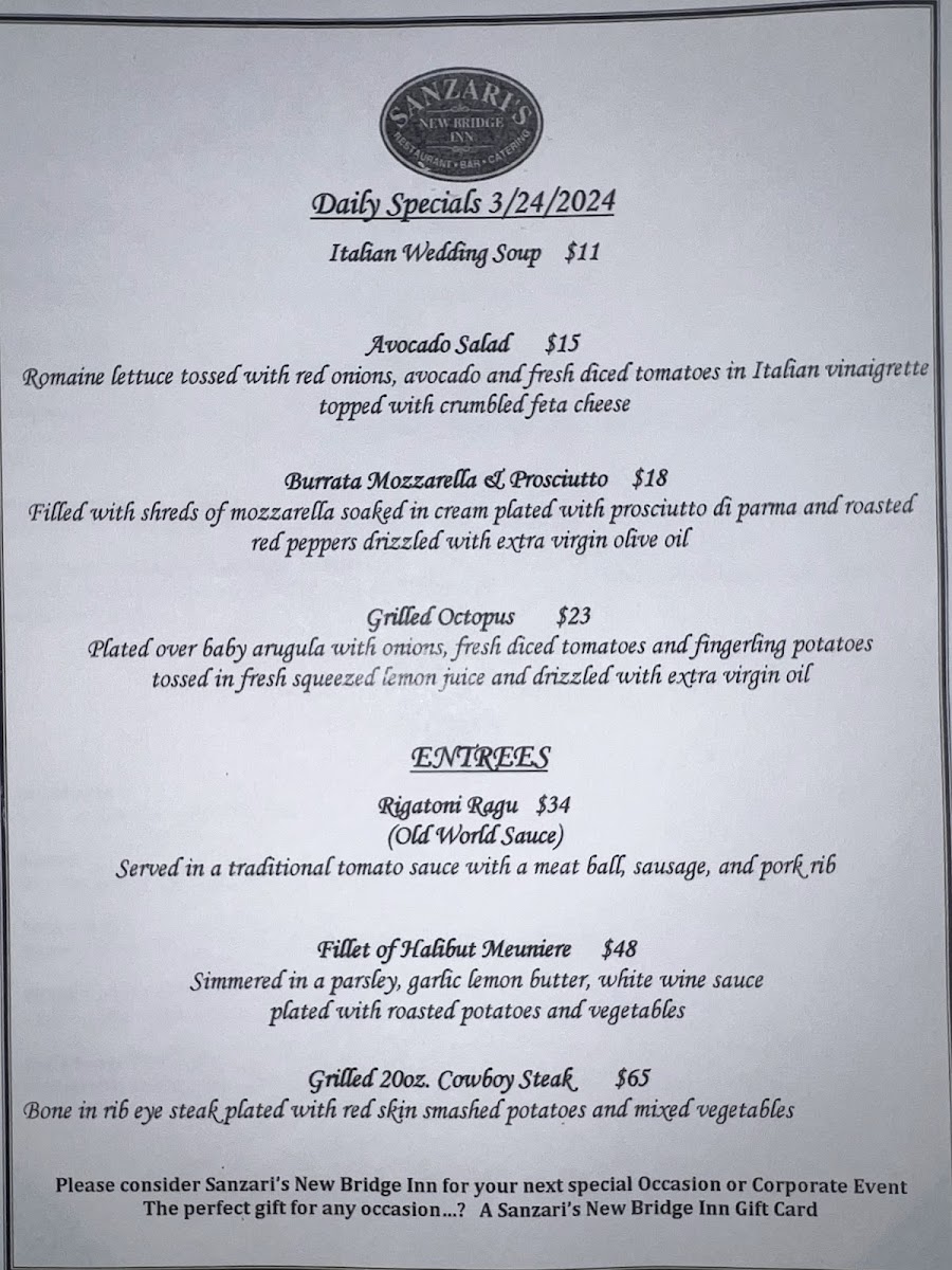 Sanzari's New Bridge Inn is not just about food; it’s about the experience. From the warm, homey feel that greets you at the door to the deliciously crafted dishes that frame your meal, it’s a gem waiting to be discovered. Whether it's a special date night or a casual family dinner, this spot is worth a visit.
